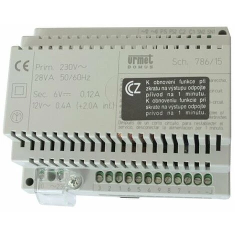 Bloc d’alimentation pour interphones Urmet, pour les systèmes d’interphonie avec générateur à double note (230 Vac), avec les caractéristiques suivantes :