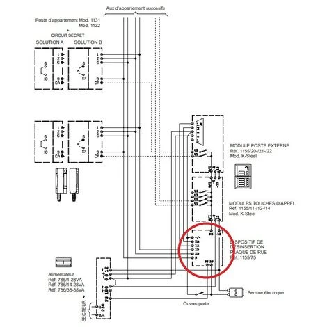 Dispositif desinsertion pour secret de conversation pour installation 5 fils (4+N) dans plaque de rue K-STEEL URMET 1155/75