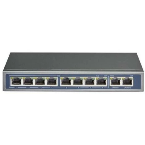 Commutateur réseau Urmet 8+2 ports PoE avec les caractéristiques suivantes :