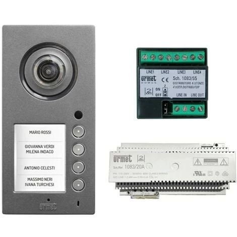 - Clavier Mikra : Système 2voice, avec 3 ou 4 utilisations 4 boutons d’appel direct, Affichage couleur 3,5′, Caméra grand-angle : 100 sans-fil V – 113 serre-câble H, Dimensions (L x H x P) : 99 x 200 x 26 mm, Degré de protection IP65, Degré de protection Chocs IK07, Installation Support Pilastrino