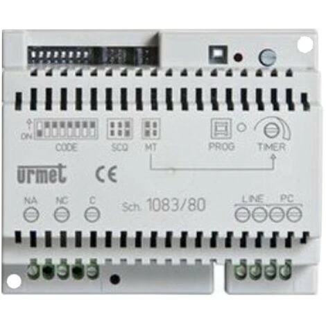 Le décodeur spécial Réf. 1083/80 est dédié au système 2Voice et permet d’activer les charges électriques au moyen d’un relais avec un contact 230Vac 5A par le biais de commandes (événements) envoyées par les utilisateurs via les stations d’appartement, les stations d’appel ou le standard téléphonique du système.